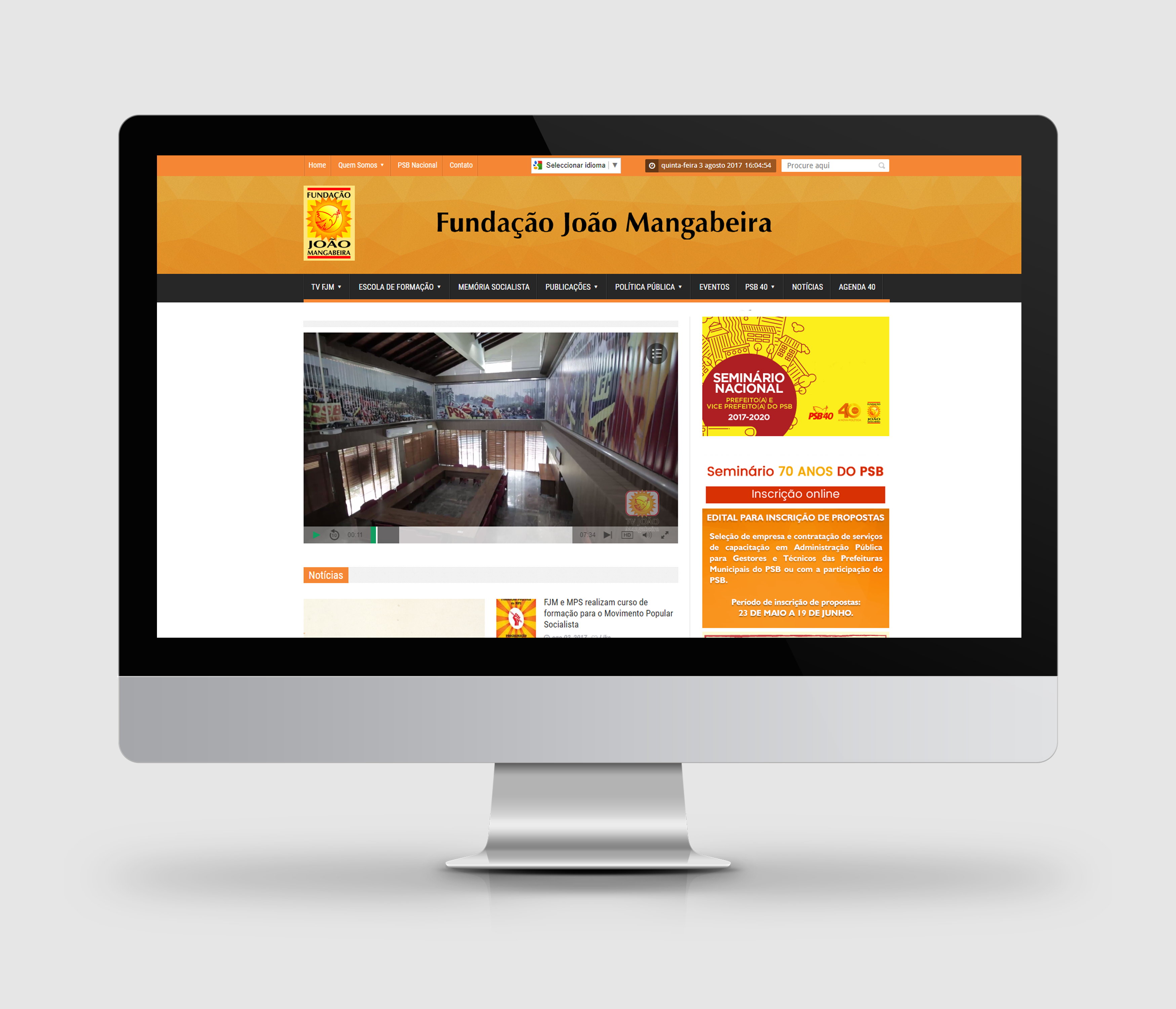 Projeto : TV 40 Cliente: Partido Socialista Brasileiro – PSB Objetivo: Desenvolvimento e criação da TV 40